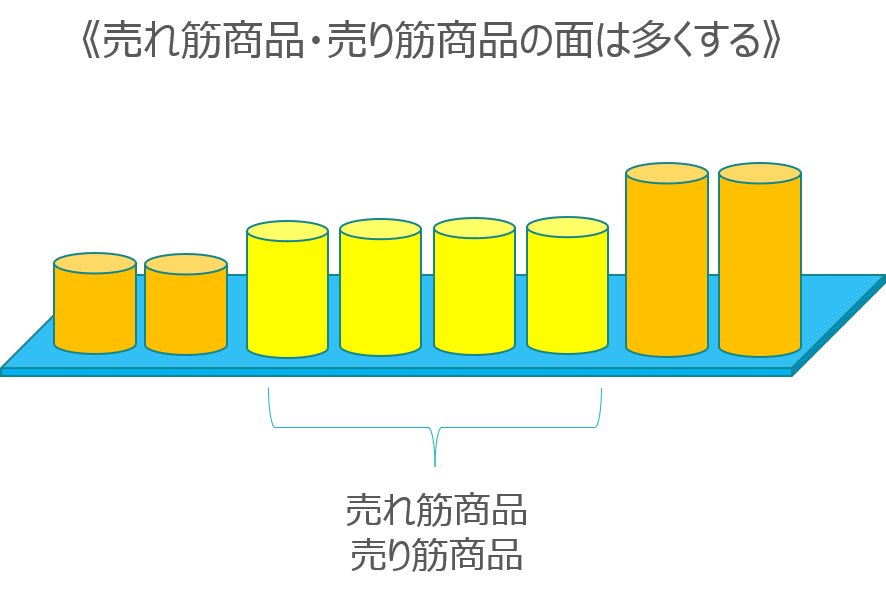 小売業ではまずは商品ありきですので、商品の中で他店にはない、自店の特徴となり得る商品は何かを明確にします。また、品揃えの幅の広さや特定の領域の品揃えの深さなども強みになり得ますので、併せて検討すると良いでしょう。